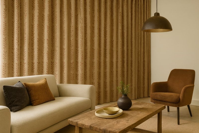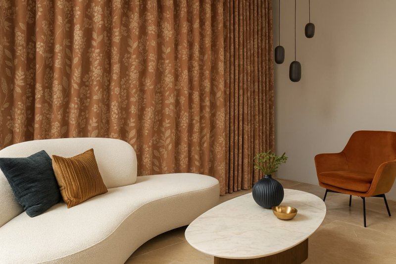 Ook in een modern interieur komen bloemen gordijnen goed tot hun recht. Kies dan voor rustige prints met grafische lijnen of subtiele bladmotieven. Zo voeg je een vleugje zachtheid toe, terwijl de strakke en frisse uitstraling van je interieur behouden blijft.
