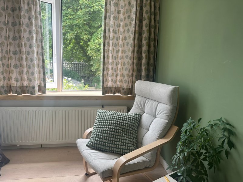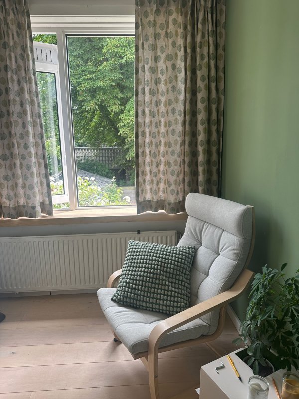 👉 Voor wie houdt van natuurlijke patronen: deze groene blaadjes gordijen laten daglicht mooi door en geven de botanische kamer een rustige uitstraling.