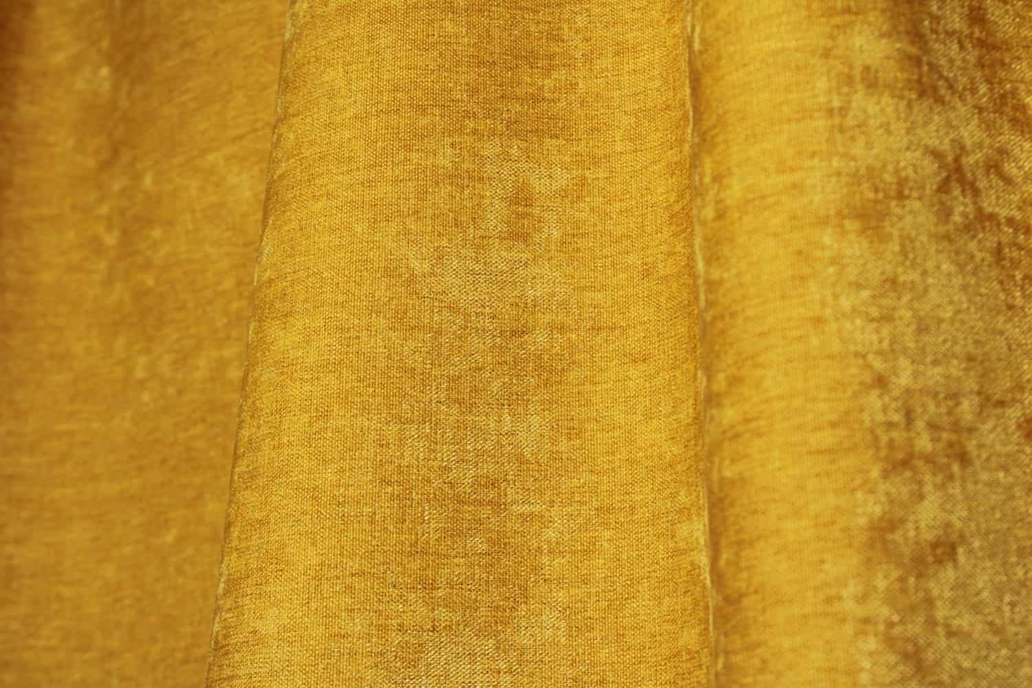 Chenille krijt gordijnen in geel hebben een lichte krijtlaag die de stof een wat zachtere uitstraling geeft. De stof is dicht geweven waardoor de gordijnen stevig hangen en goed in model blijven. Door die dichte structuur voel je minder tocht en blijft de ruimte beter op temperatuur. Ze laten ook weinig licht door, waardoor je de kamer zonder extra voering goed kunt verduisteren.