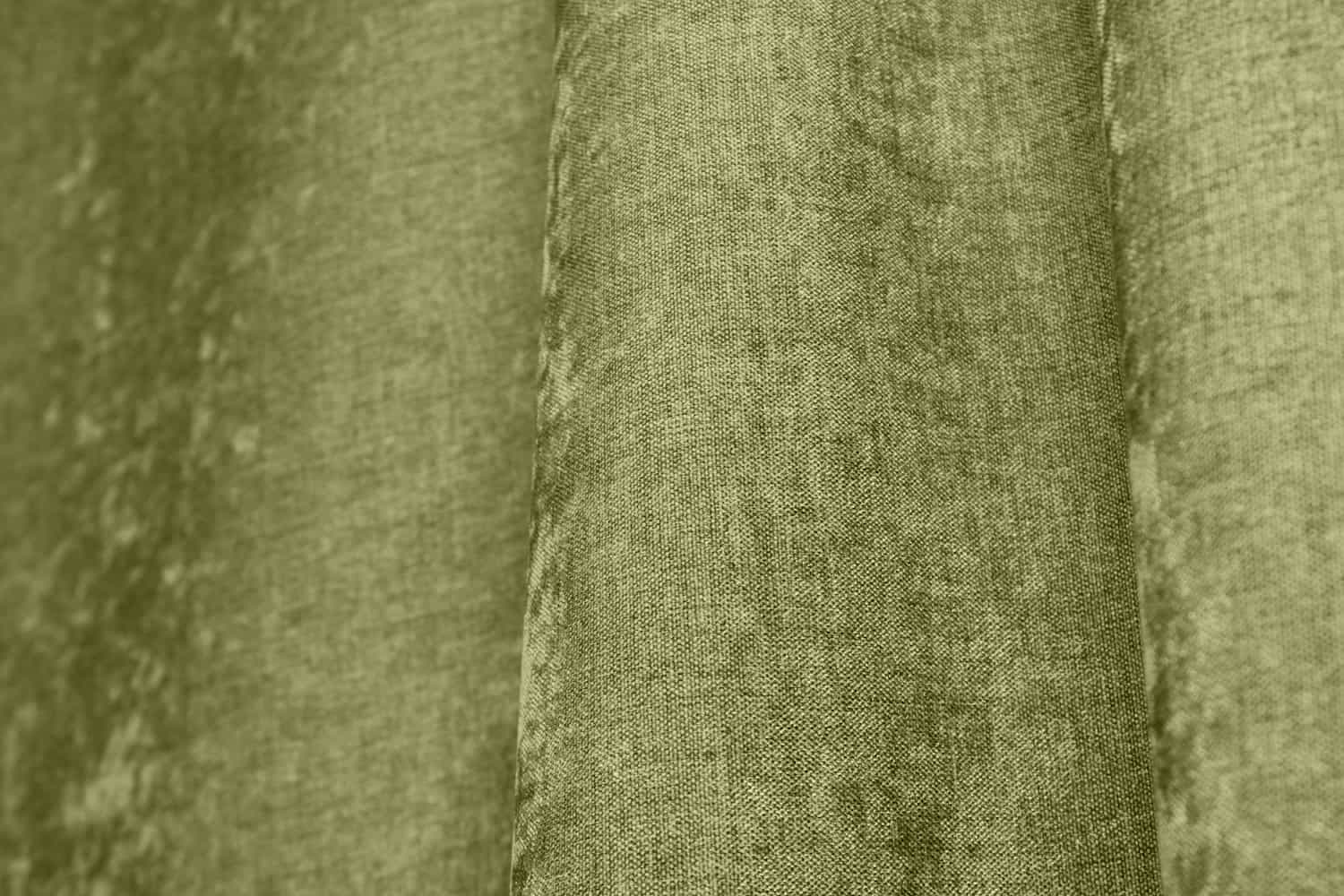 Chenille krijt gordijnen in pistache hebben een zachte look met een lichte krijt achtige finish die de stof net wat speelser maakt. Het is een volle stof die mooi in de plooi valt en meteen iets comfortabels toevoegt aan de ruimte. Omdat chenille dicht geweven is werkt de stof goed tegen tocht. Ook houdt het een groot deel van het licht tegen waardoor er geen voering nodig is.