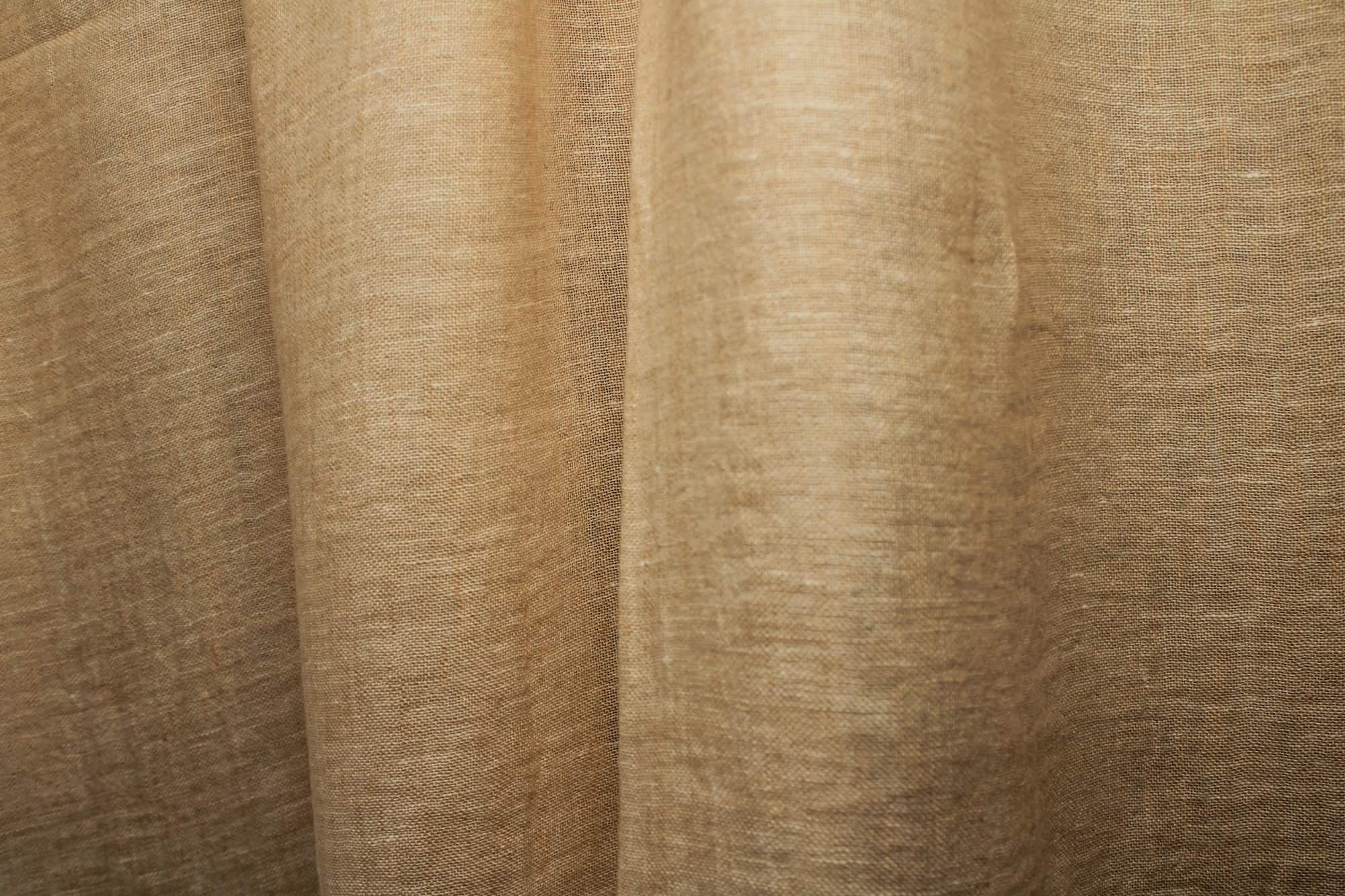 Zandkleurige inbetween linnen gordijnen uit de Opale collectie zijn gemaakt van 100 procent linnen. De stof heeft een gewicht van 346 gram per lopende meter, een maximale krimp van 2 procent en een lichtechtheid van 5. De gordijnen hebben een hoogte van 320 cm en zijn geschikt voor kamerhoge ramen en wave gordijnen zonder zichtbare naden. Het inbetween linnen laat het daglicht op een zachte en gelijkmatige manier door.