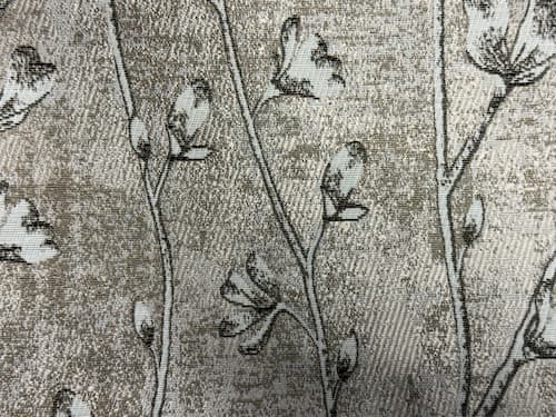 Deze jacquard flora gordijnen in beige hebben een ingeweven patroon van slanke takken met bloemknoppen die rustig omhoog lopen. Het dessin zit echt in de stof geweven en is geen opdruk. Dat zie je terug in de zachte diepte van het patroon. De licht gemĂȘleerde achtergrond geeft de stof net wat meer leven zonder dat het druk wordt.