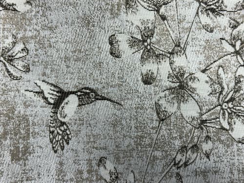 Met een Martindale van 25.000 toeren is deze jacquard stof geschikt voor normaal tot intensiever dagelijks gebruik. Leverbaar op 280 cm breed. De grijze kleur laat het vogelmotief rustig naar voren komen , daarnaast is de stof beschikbaar in zoveel andere leuke kleurtjess.