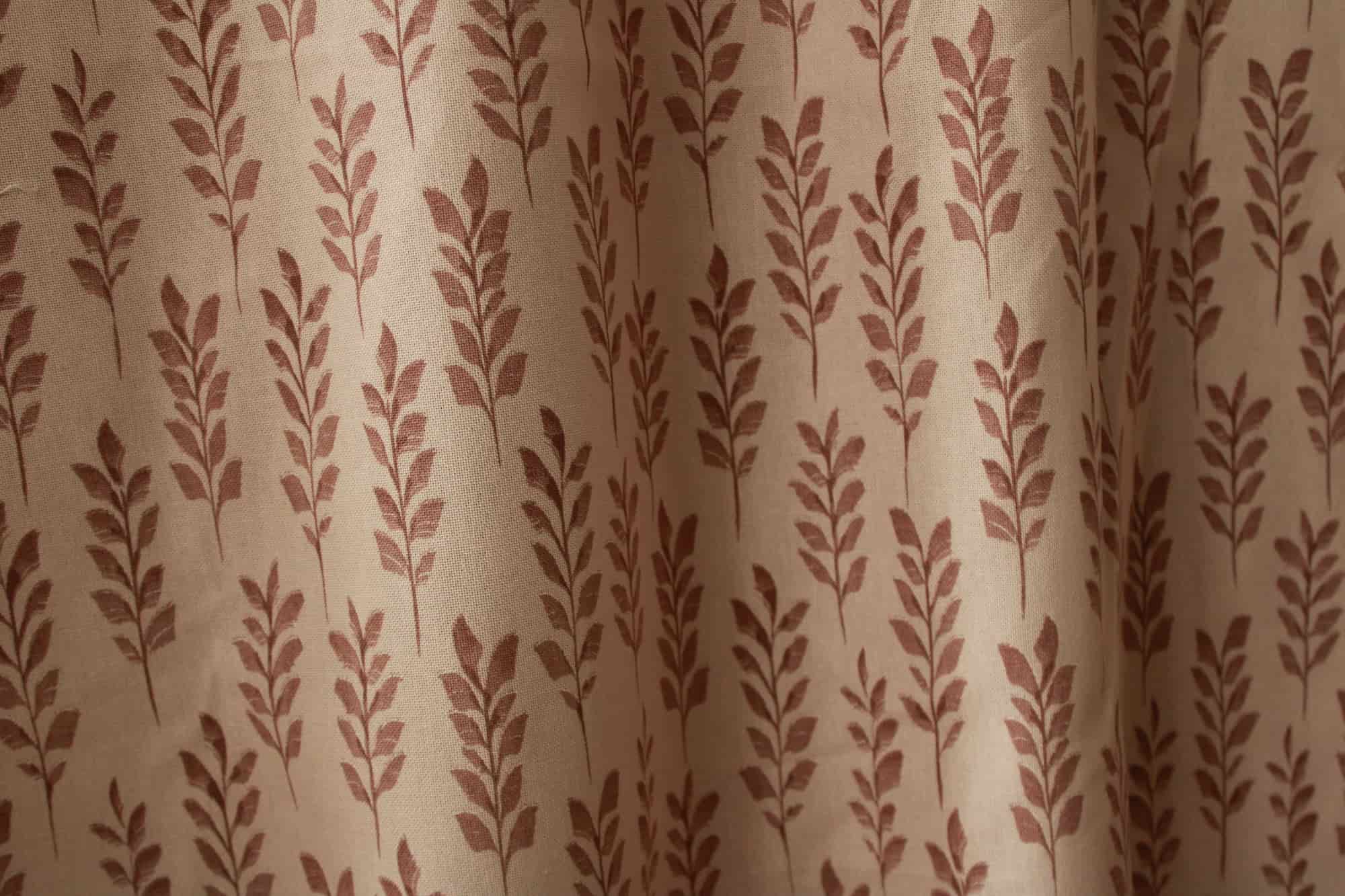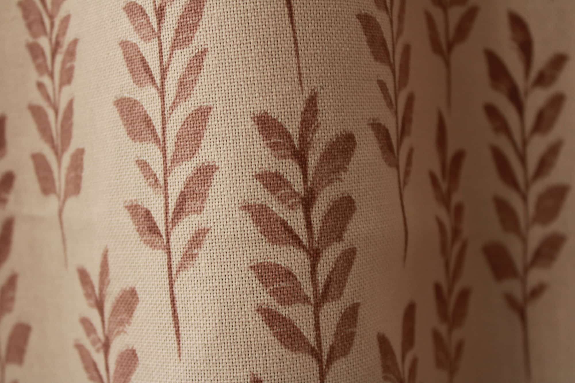 Bloemen gordijnen Leaves Blush brengen een zachte en rustige sfeer in huis, perfect voor bijvoorbeeld de kinderkamer. De lichtroze basis met subtiel bloemen- en bladmotief geeft de stof een natuurlijke en botanische uitstraling.