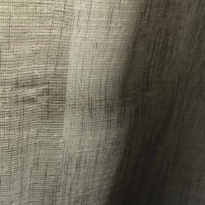 Linnen look inbetween gordijn met een rustige grijstint. De stof heeft een voelbare structuur en een natuurlijke uitstraling. Het licht wordt zacht doorgelaten, waardoor de ruimte licht blijft en inkijk wordt verzacht. De structuur van de stof lijkt op die van linnen