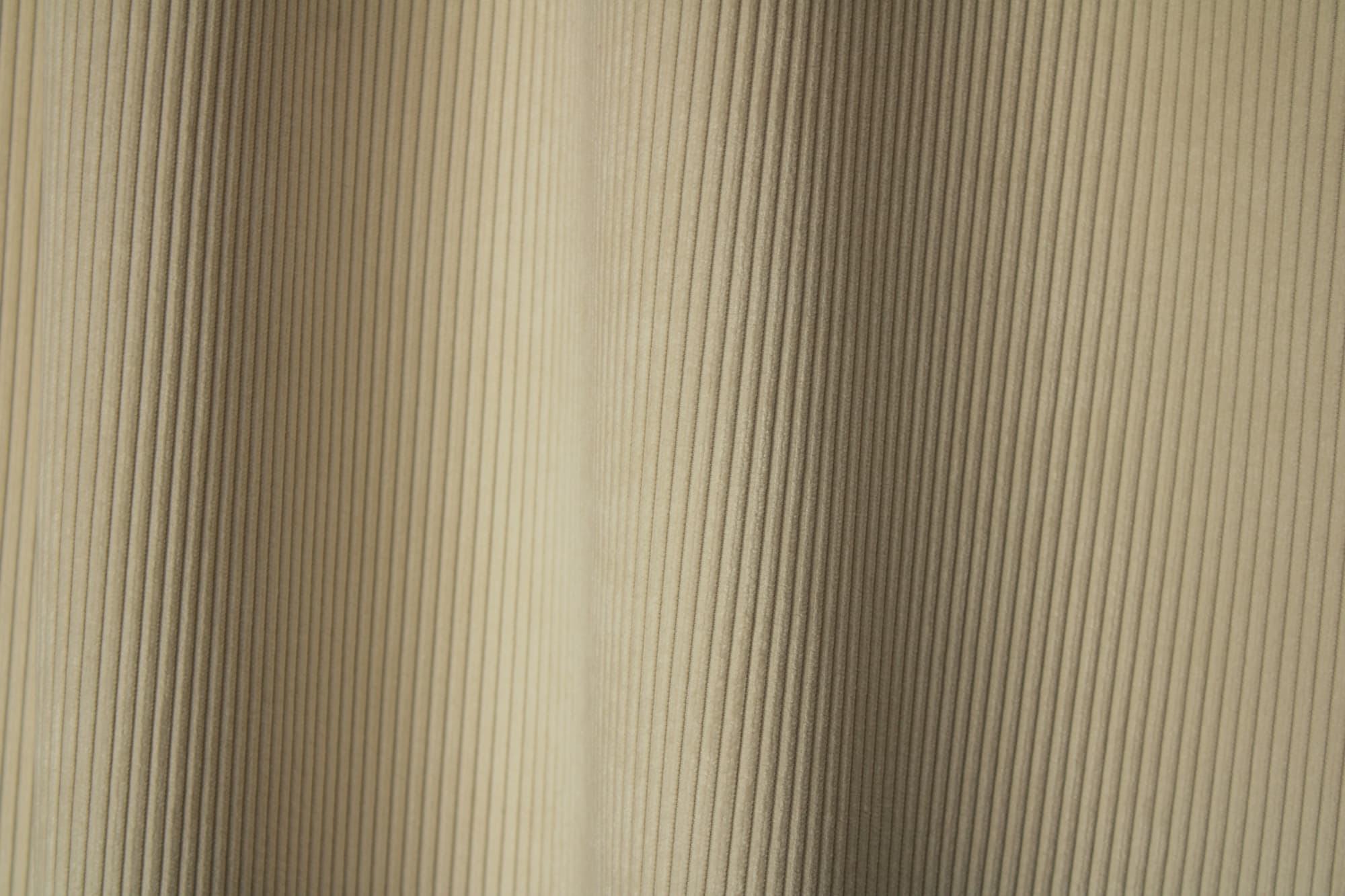 De ribstof crème heeft een lichte, zachte uitstraling die rust en ruimte brengt in je interieur. De structuur doet denken aan klassiek corduroy, maar met een moderne twist die perfect past bij eigentijdse woonstijlen. De volle valling en grof geribbelde stof geven de gordijnen een luxe uitstraling zonder dat het zwaar oogt.