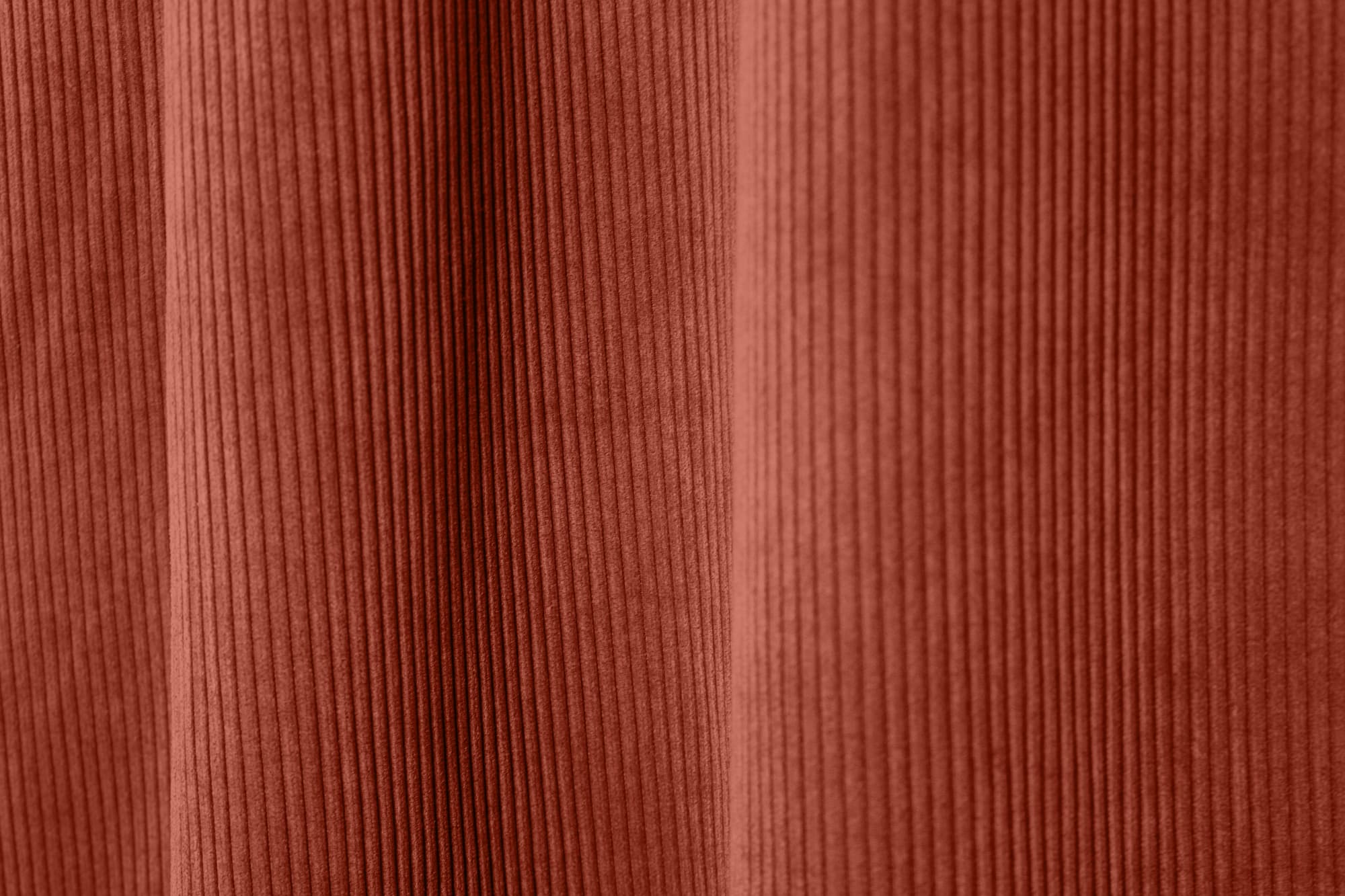 De ribstof roodbruin voegt warmte en diepte toe aan je interieur. De rijke kleur heeft iets aards en sfeervols, perfect om een gezellige en karaktervolle ruimte te creëren. De grof geribbelde structuur geeft de gordijnen een subtiel retrogevoel, terwijl de volle valling zorgt voor een luxe en tijdloze uitstraling.