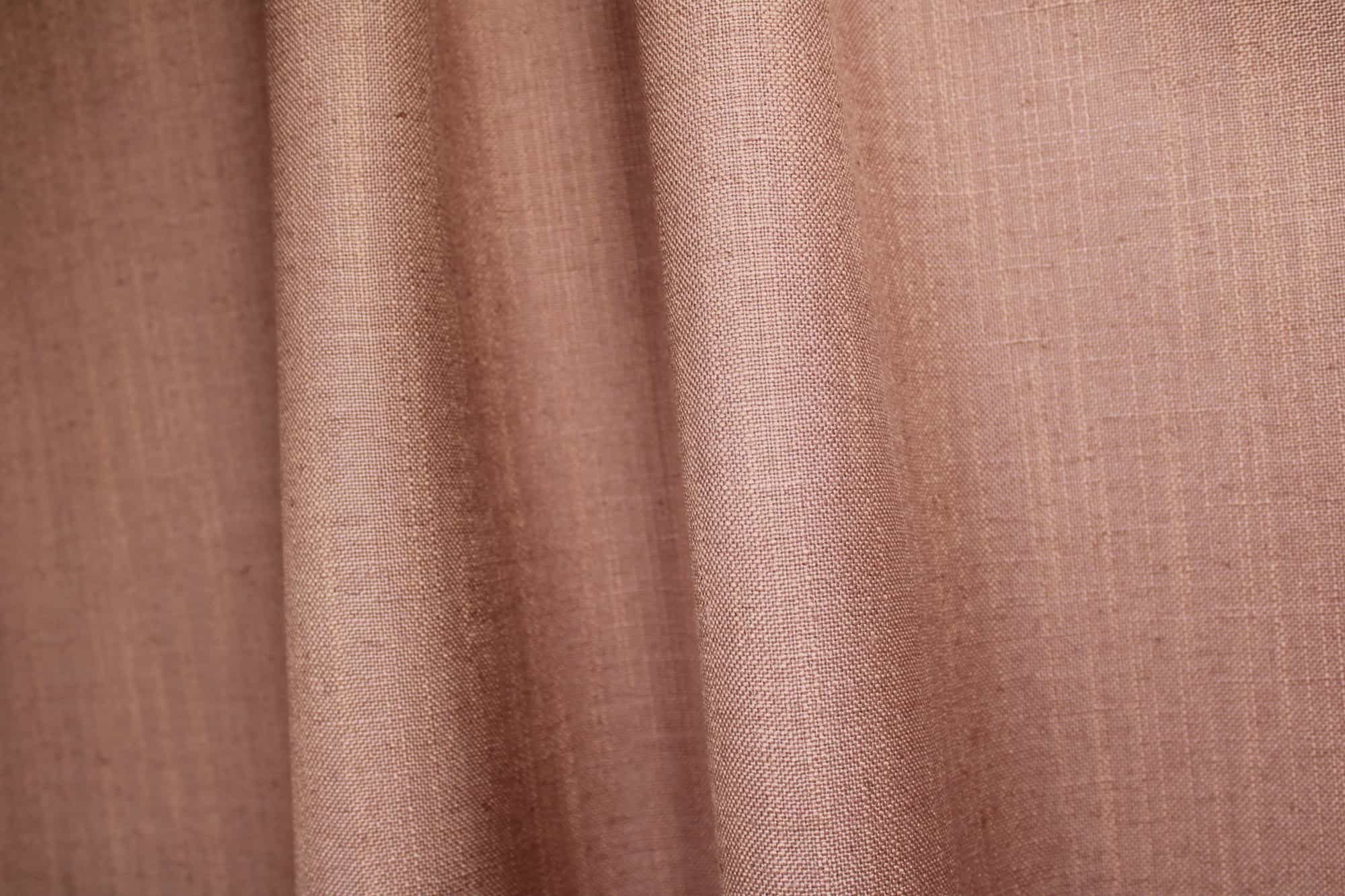 Roze verduisterende linnen look gordijnen uit de collectie Zen linnen geven je interieur een zachte en lichte uitstraling. De stof heeft een subtiele linnenstructuur en een witte achterkant die het licht effectief buiten houdt. Met een gewicht van 510 gram per m² valt de stof mooi in de plooi en voelt stevig aan. De samenstelling van polyester, viscose, acryl, TIO2 en linnen zorgt voor een duurzame kwaliteit. Met een Martindale waarde van 90000 toeren is deze stof geschikt voor dagelijks gebruik.