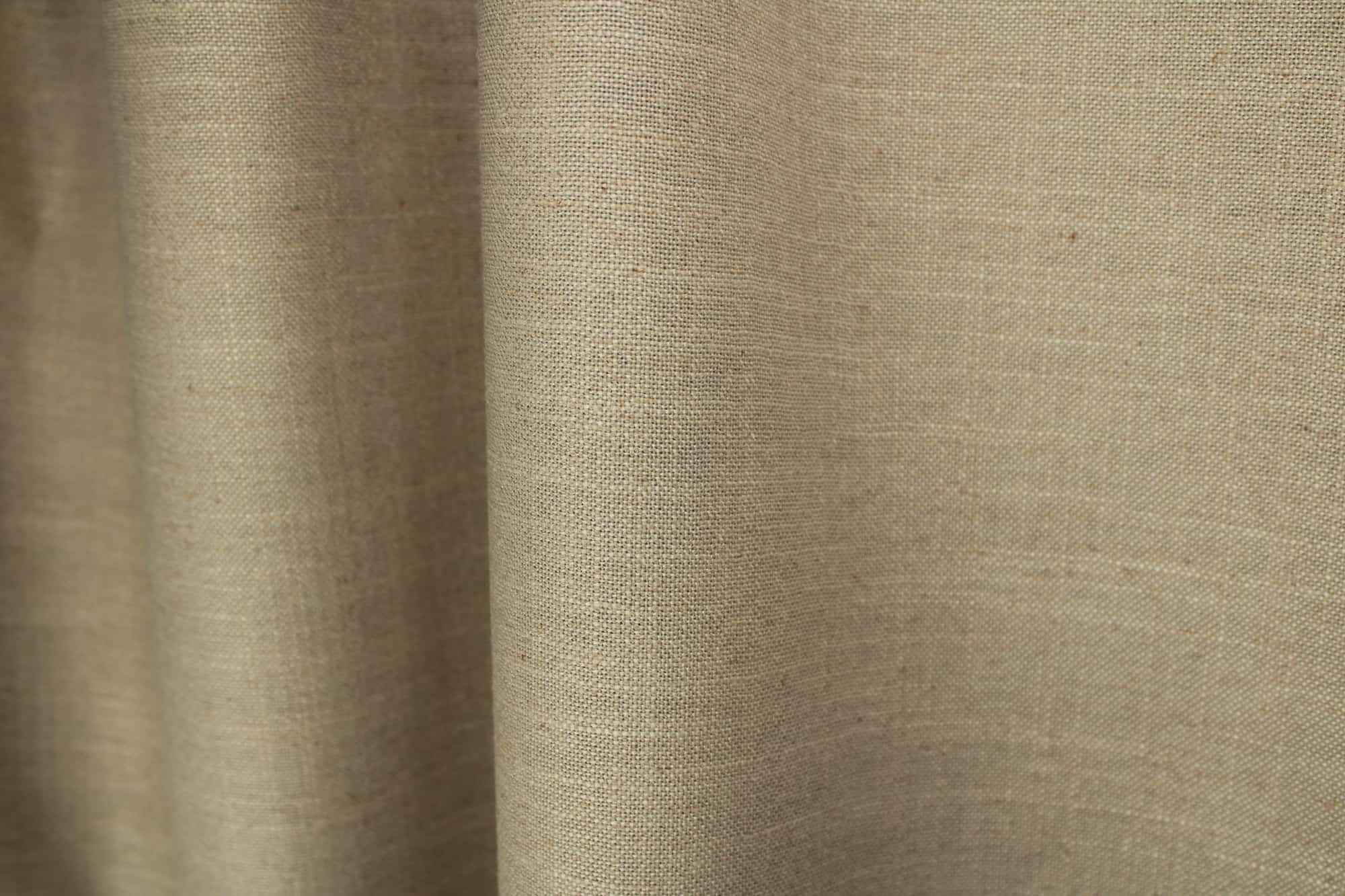 Soft taupe verduisterende linnen look gordijnen uit de collectie Zen linnen geven je interieur een warme en rustige uitstraling. De stof heeft een subtiele linnenstructuur en een witte achterkant die het licht goed buiten houdt.